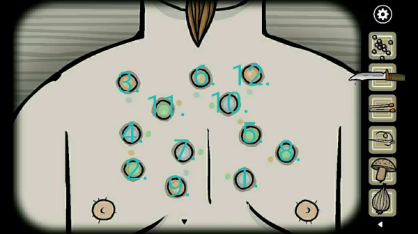 进入小屋,按顺序点破叔叔胸口上的疹泡
