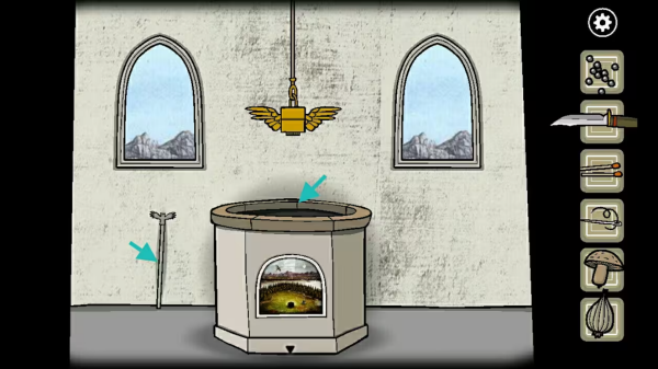 打开凳子上的纸条获得提示,再拿走凳子上的「火柴」和「针线」