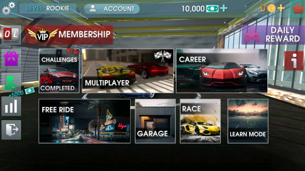 1、进入游戏后,在主界面上,玩家能随心点击任意一种游戏模式,轻松开启自己的驾驶之旅。