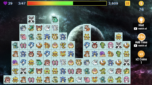 宠物连连看玩法简单又上瘾。玩家要在限定时间内,用不超过两次转弯的线连接两个相同的宠物图案进行消除。游戏里有好多可爱的宠物主题,关卡多多,难度会慢慢提升,特别考验眼力和反应力。还有提示、打乱这些实用道具帮你通关,玩起来轻松又解压。