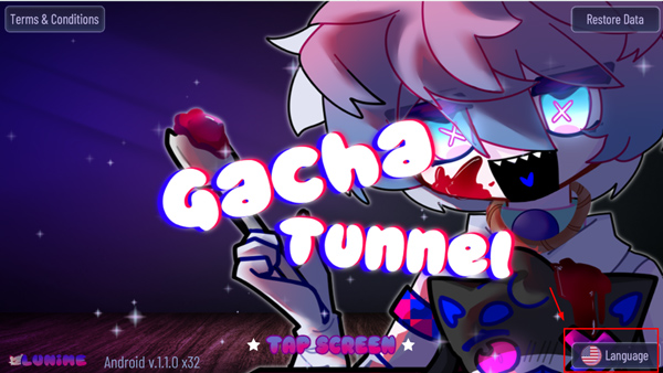 1、先打开加查隧道游戏,进入游戏主界面后,能看到界面右下角有个“Language”选项按钮。