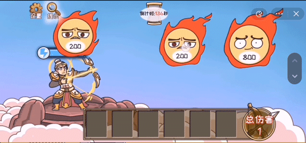第五关“后羿射日篇”,要在180秒内让天上只剩一个太阳。两个一样的太阳能合成更大的太阳,把所有太阳都合成就能通关。