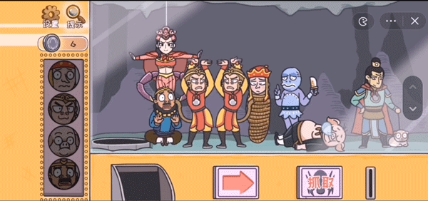 第四关“难遁盘丝洞”,要让蜘蛛夫人抓住师徒四人。先移动到沙僧上方抓住他,接着到奔波儿灞上面抓住,再移动过去抓住唐僧。抓住八戒耳朵一直点就能抓取,长按唐僧他会念紧箍咒,孙悟空就会出现,抓住就能通关。