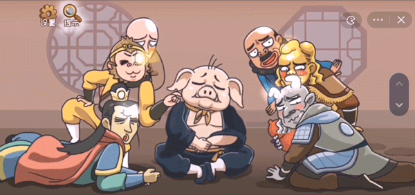 第一关“八戒浮偷闲”,任务是叫醒偷懒的八戒。通关操作不难,依次点亮二郎神的第三只眼,点击孙悟空的左眼,把唐僧的帽子移开,再分别点击金角大王和银角大王的角,最后移开八戒的耙子,让沙僧露出来,这样就能顺利过关啦。