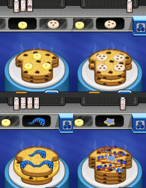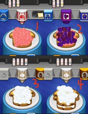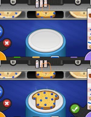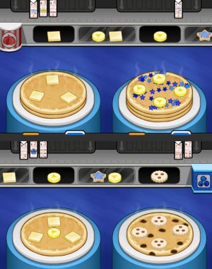 如图1所示,将煎饼数字上面两个灰色的圆点对准第四个订单,这个方法适用于薄饼、法式吐司和华夫饼。