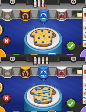 必须将配料均匀地倒在松饼上,如果没有均匀地覆盖表面就会扣分。