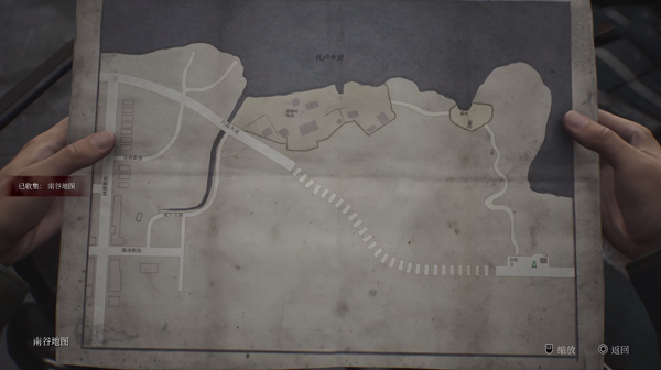 5、拿到地图后,接着寻找各种线索。在探索过程中,会遭遇恐怖的怪物,这时你可以用钢管和手枪来应对,一路破解谜题,找出藏在幕后的真相,最终逃离这个可怕的地方。