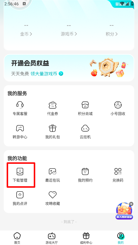 5、最后在我的页面点击"下载管理"就可以查看所下载的游戏。